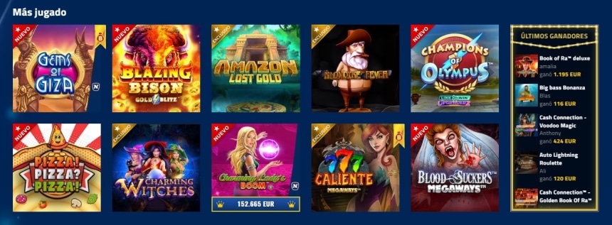 Cada semana se actualiza el top 10 de la semana en el que hay lanzamientos del casino en los que puedes jugar y apostar. Si haces apuestas mínimas de 30 €, tienes la oportunidad de recibir hasta 20 €.