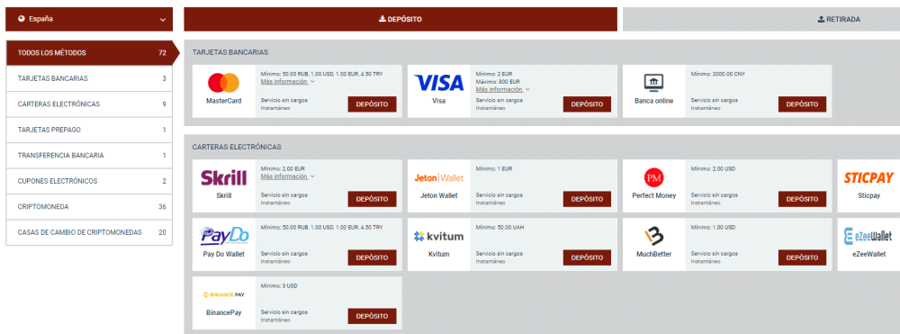 Este punto es lo más importante a la hora de retirar los fondos. Muchos casinos ofrecen hasta 50 métodos distintos para realizar retiros en la red. Entre las opciones mejor ponderadas están las billeteras digitales como PayPal y Skrill; Criptomonedas como Bitcoin, USDT o Ethereum; o recursos tradicionales como tarjetas de crédito y transferencias bancarias.