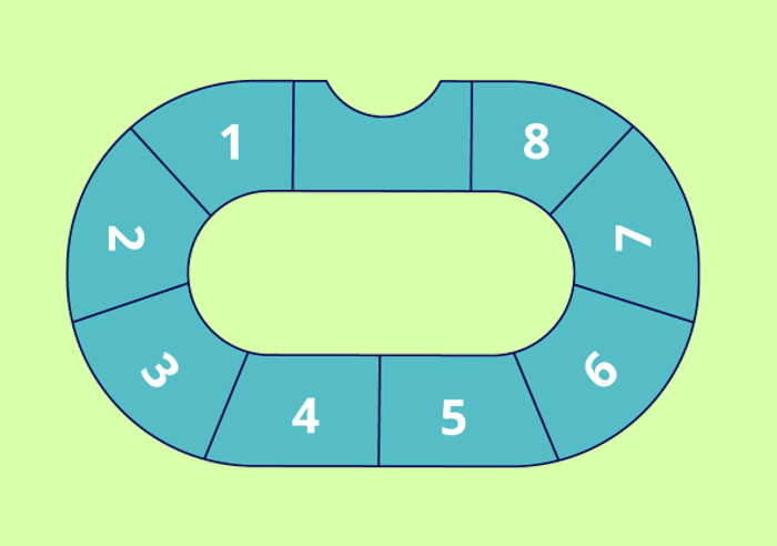 Por regla, los jugadores deberán plantarse cuando tengan una sumatoria igual o superior a 7. En caso de sumar 5-6 podrá seleccionar una tercera, mientras que deberá obligatoriamente tomar una nueva en rangos de números inferiores. Esto es igualmente una regla a considerar por parte del dealer que representa el casino.