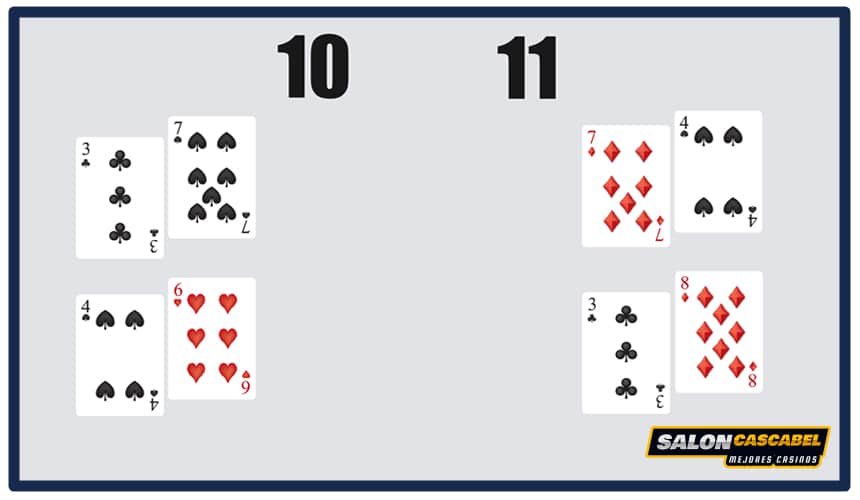 No dobles tu apuesta si tienes un 11 y el crupier un 10. Asegúrate de pedir carta.
