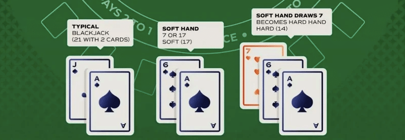 Puede sonar confuso pero es realmente sencillo. En el Blackjack hay dos tipos de manos: las duras y las blandas.