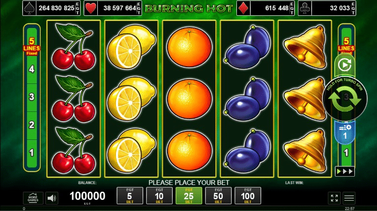 Lo más apropiado es que en Burning Hot no se hagan apuestas muy altas, es por eso que el límite es de 100 EGT.