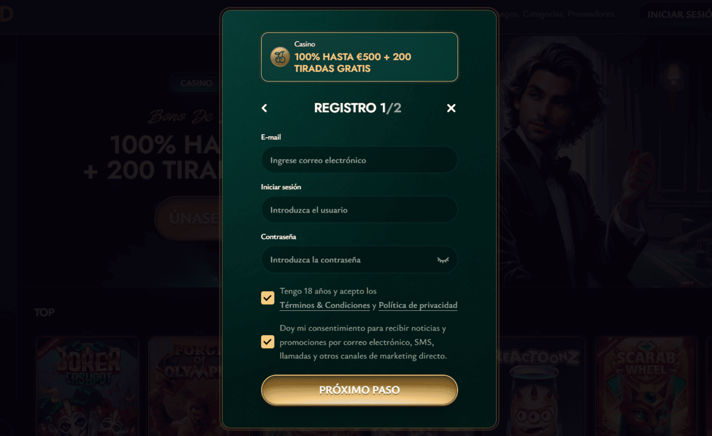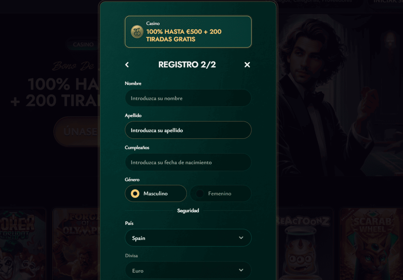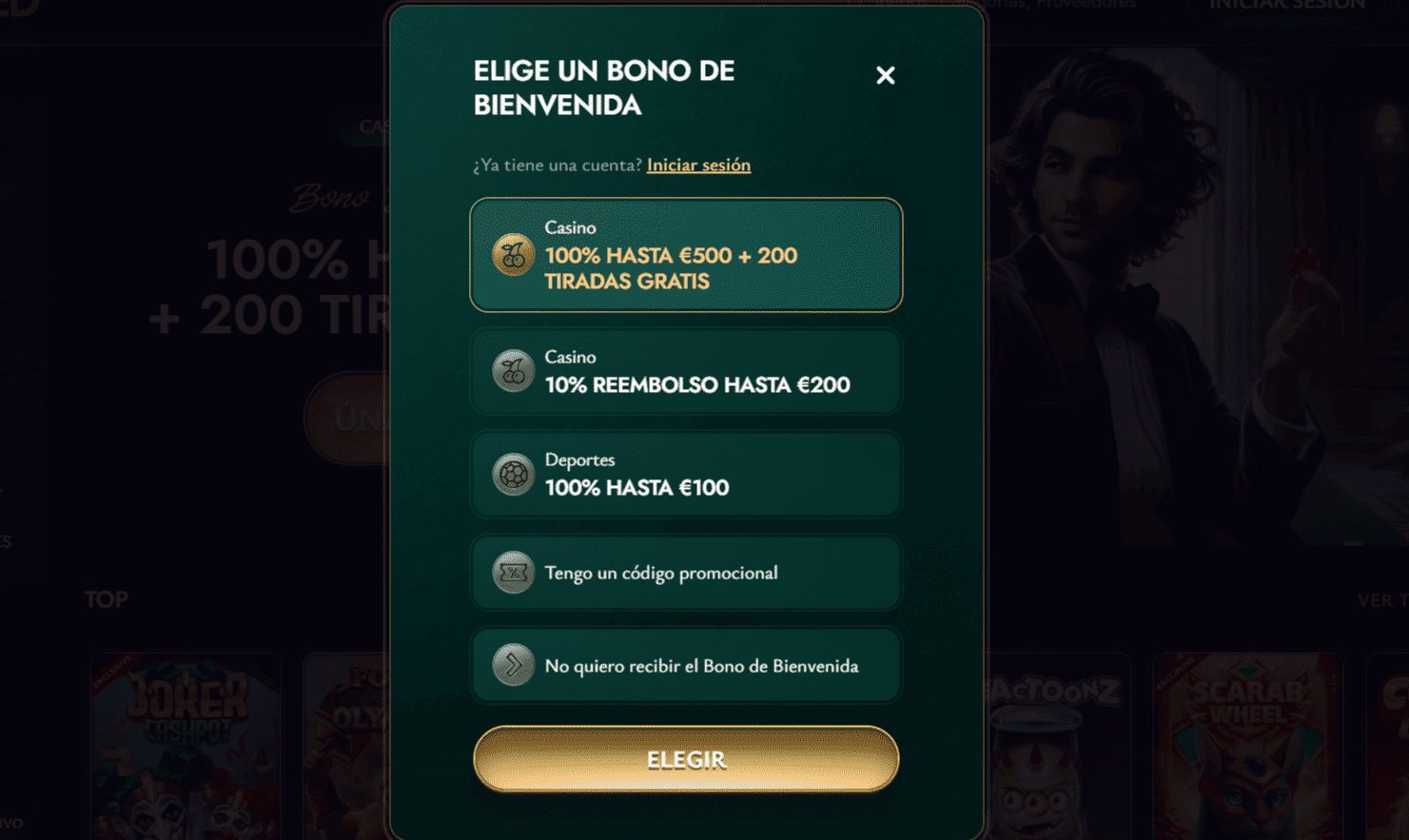 Bono de bienvenida 🎁 100 % de tu primer depósito hasta € 500 + 200 giros gratis |