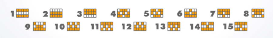El juego cuenta con un total de 15 líneas de pago, que siguen los siguientes patrones.