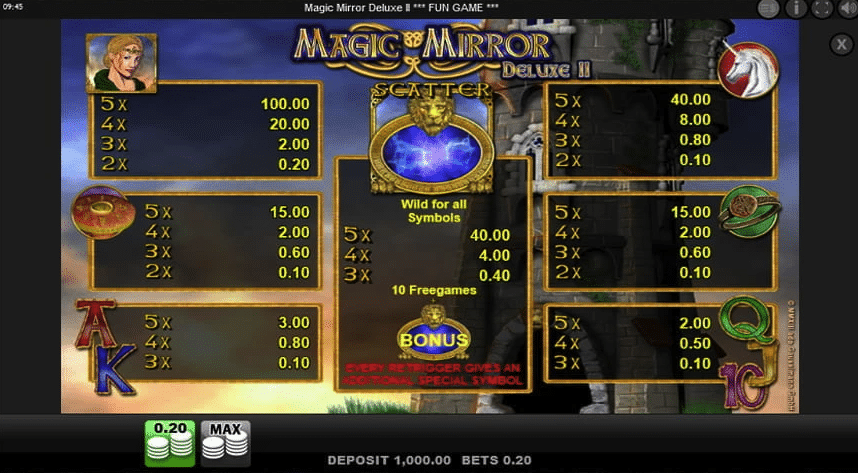 ¡Así de sencillo es jugar a Magic Mirror Deluxe 2! Te aconsejo, no obstante, probar la versión demo antes de apostar con dinero real, para ir haciéndonos al juego con cierta ventaja.
