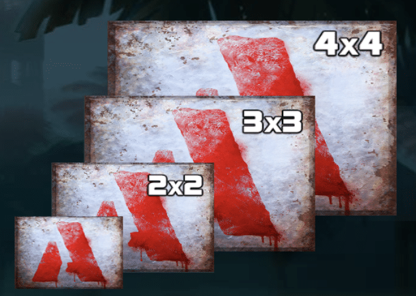 Tanto los comodines como los símbolos regulares tienen la capacidad de aparecer en los tambores en dimensiones más grandes, ocupando más de una posición, ya sea en formato 2×2, 3×3 o incluso 4×4. |