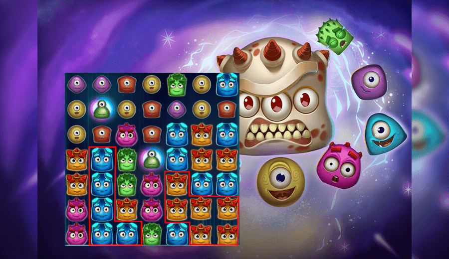 Las líneas de pago en él no son convencionales, es más, puedo decir que no existen. El motivo de esto es que las combinaciones ganadoras no se obtienen al completar líneas, sino grupos de símbolos. Estos deben ser iguales y formar grupos de 5 o más. A continuación, te dejo una imagen de grupos que se pueden formar en esta tragaperra: