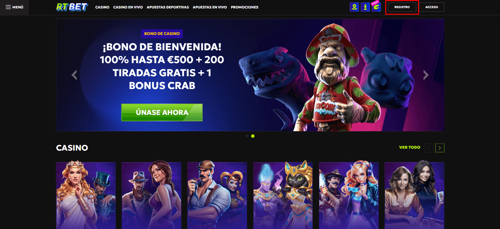 Cuando estés en el sitio de internet de RTBET Casino, aplica los siguientes pasos para abrir tu cuenta: