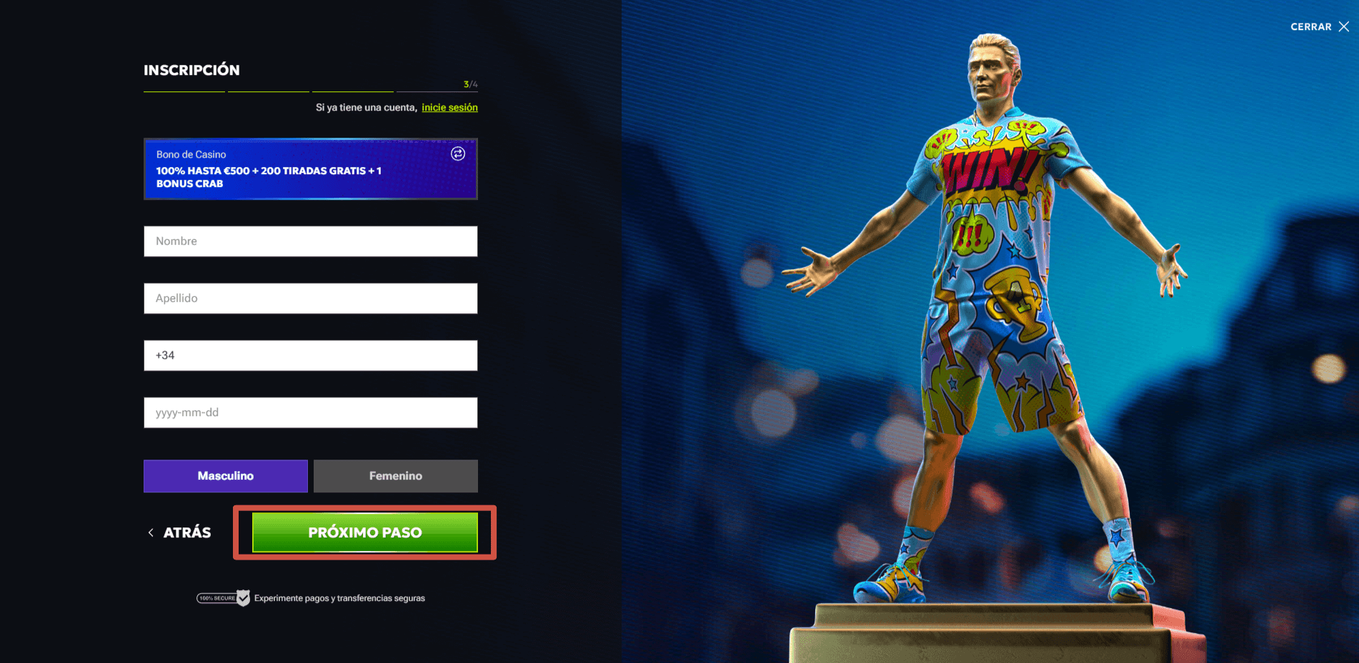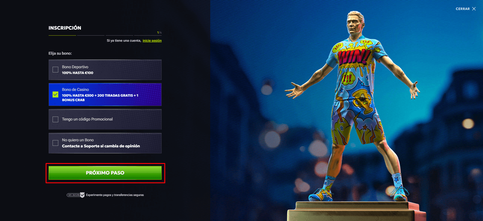 Selecciona el bono o la opción de ingresar un código promocional. Luego, presiona “Próximo paso”.