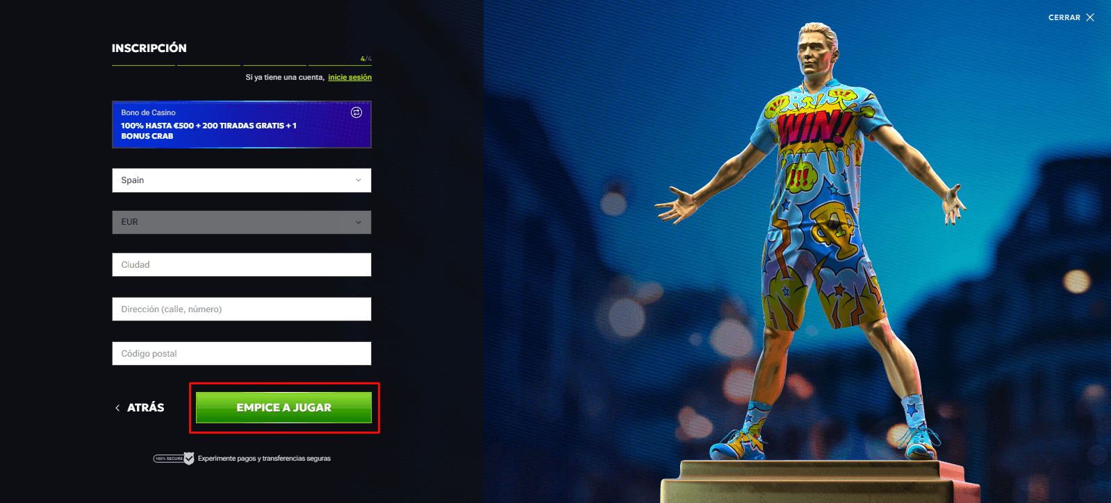 Completa el formulario con tu dirección de domicilio y presiona “Empiece a jugar”.