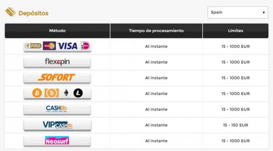 | 💶Neosurf | 15€-1.000€ | Inmediato | – | – |